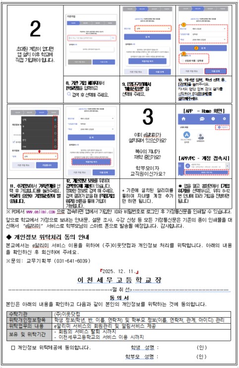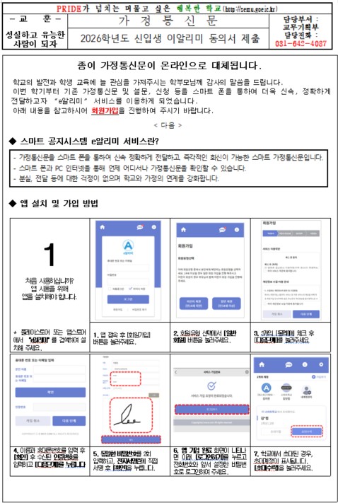 2026학년도 신입생 이알리미 동의서 제출